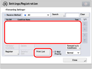 Press [Yes] on the confirmation screen to print the list of forwarding settings.