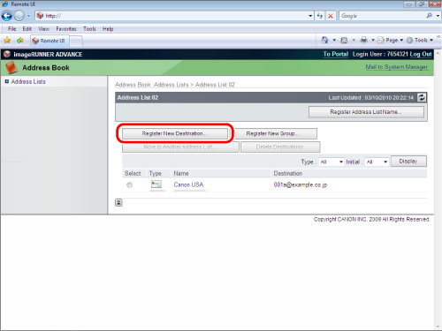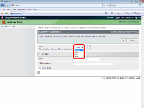 E-Mail Address Acquired for the imageRUNNER ADVANCE Machine