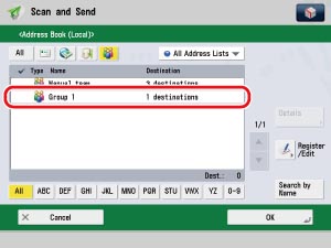 Select the newly registered destination [group1] → press [OK].