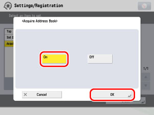 (Settings/Registration) → [Set Destination] → [Acquire Remote Address Book] → [Acquire Address Book].
