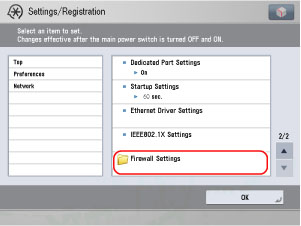 (Settings/Registration) → [Preferences] → [Network] → [Firewall Settings].