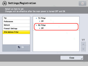 Press [IPv4 Address Filter] → [RX Filter].