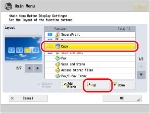 Repeat step 4 to move [Scan and Store] to <2> position, [Fax] to <3> position, and [Secure Print] to <4> position.