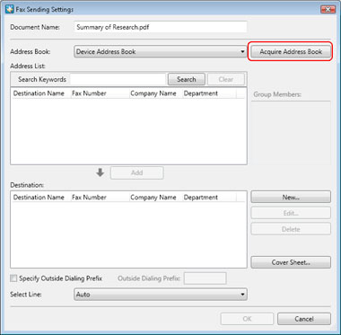 If the access number setting is specified in a device, [Acquire address book] dialog box is displayed.