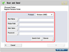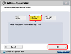 In this procedure, select [Register for Each User] to specify the personal folder.