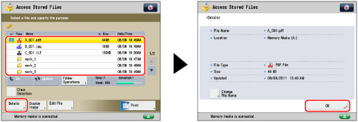 Select the desired file → press [Details] → [OK].