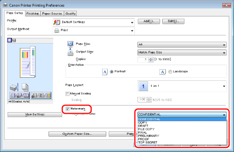 » Print » Printing from a Computer (Windows) » Watermark Printing