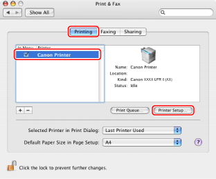 Click [Printing] → select your printer → click [Printer Setup].