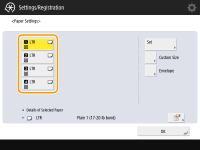 ![]() If you register the paper size you use frequently on buttons <S1> to <S5>, you can call them up with one touch. Registering Free Size Paper (Custom Size Paper)