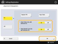 You can use Department ID Management to manage printing and remote scanning operations performed via a computer (Using Your Computer to Scan (Remote Scan) (Windows)). Use this function when you would like to improve security or monitor the number of pages that are printed.
