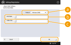 <Folder Path>Enter the folder path for the home folder. For example, enter "users\public\share" for a home folder created inside a subfolder named "share" in the "Public" folder on the C: drive (path: "C:\users\public\share").