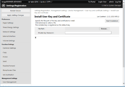 [User Key and Certificate Settings].