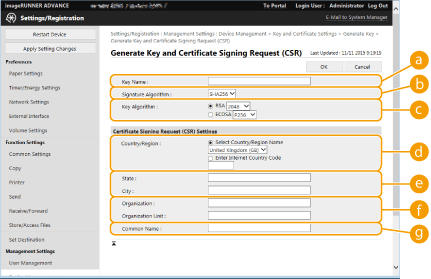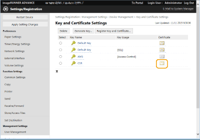Click [Device Management] [Key and Certificate Settings].