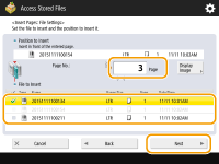 ![]() Enter the page number where you want to insert the file using the numeric keys.