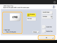 If <Prioritize Printer Driver Settings for Jobs with MP Tray> is set to <On>, printer driver settings are prioritized when the multi-purpose tray is specified as the paper source for jobs from the printer driver.