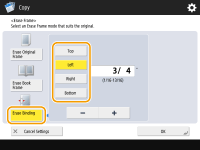 Press <Center> or <Sides>, and enter each erasing width.