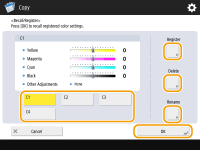 select a button from <C1> to <C4> press <Register> <Yes> <OK>.![]() ![]() To recall registered settings, press <Recall/Register>, select a button, and press <OK>.