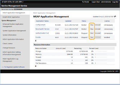 Click [Started] / [Stopped] for the MEAP application to be used.