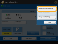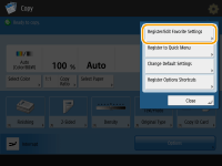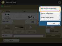 If you use the same settings every time for the Copy, Fax, or Scan function or want to save complicated settings, you can register settings as favorite settings, which can then be conveniently recalled.