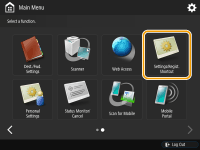 <Settings/Regist. Shortcut> can be displayed on the top of the screen or on the Main Menu screen. For more information, see