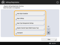 You can register shortcuts for frequently used Settings/Registration settings in <Settings/Regist. Shortcut>. By using the shortcut, you can display the settings screen directly.