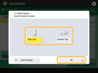 Select <Book Type> for originals whose images on the front and back sides face the same direction, or <Calendar Type> for originals whose images on the front and back sides face in opposite directions.