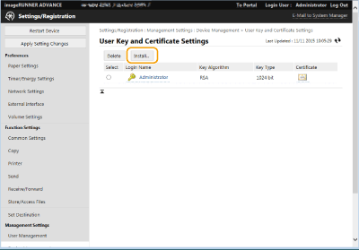 [User Key and Certificate Settings].