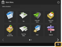 When the trimmer inside the finisher or the external trimmer becomes full of trim waste, an icon appears at the bottom-right of the touch panel display. Press the icon, and follow the on-screen instructions to discard trim waste.