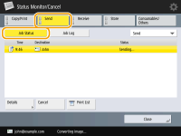 <OK> is displayed in the <Result> column when a document was sent or saved successfully. If <NG> is displayed, this shows that a document failed to be sent or saved because it was canceled or there was some error.