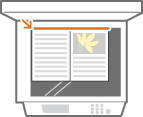 When scanning facing pages of a book or bound original, place the original on the platen glass. Place it face down with its corner aligned with the top-left corner of the platen glass, as shown below.